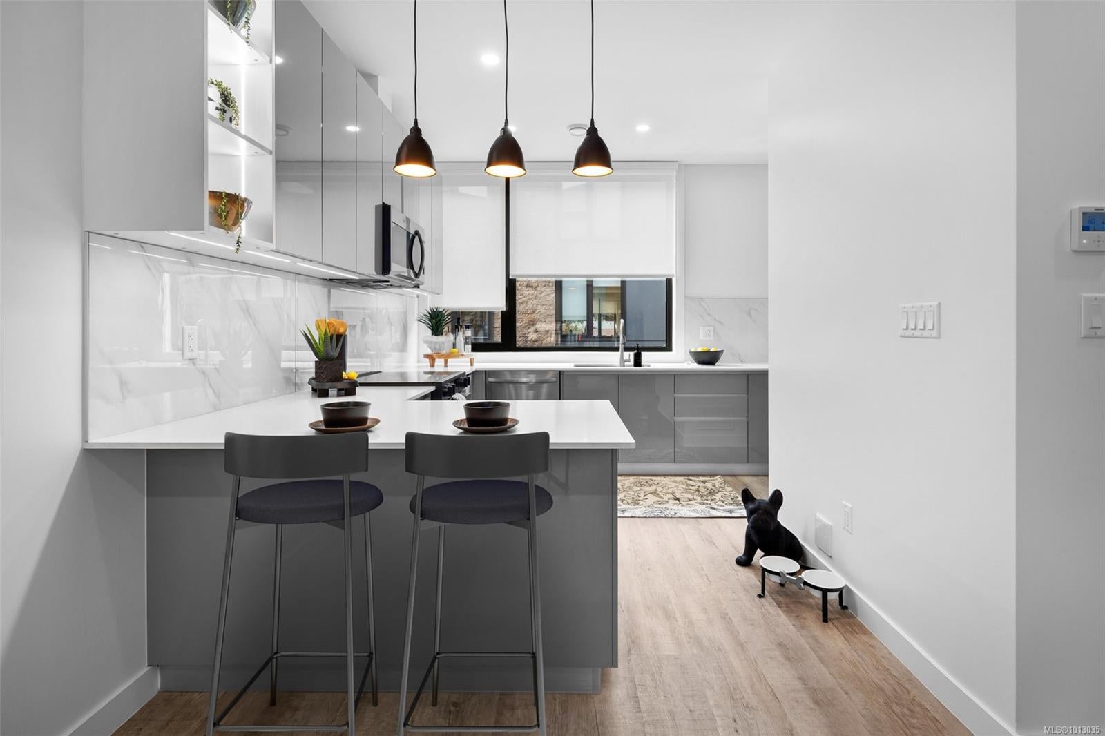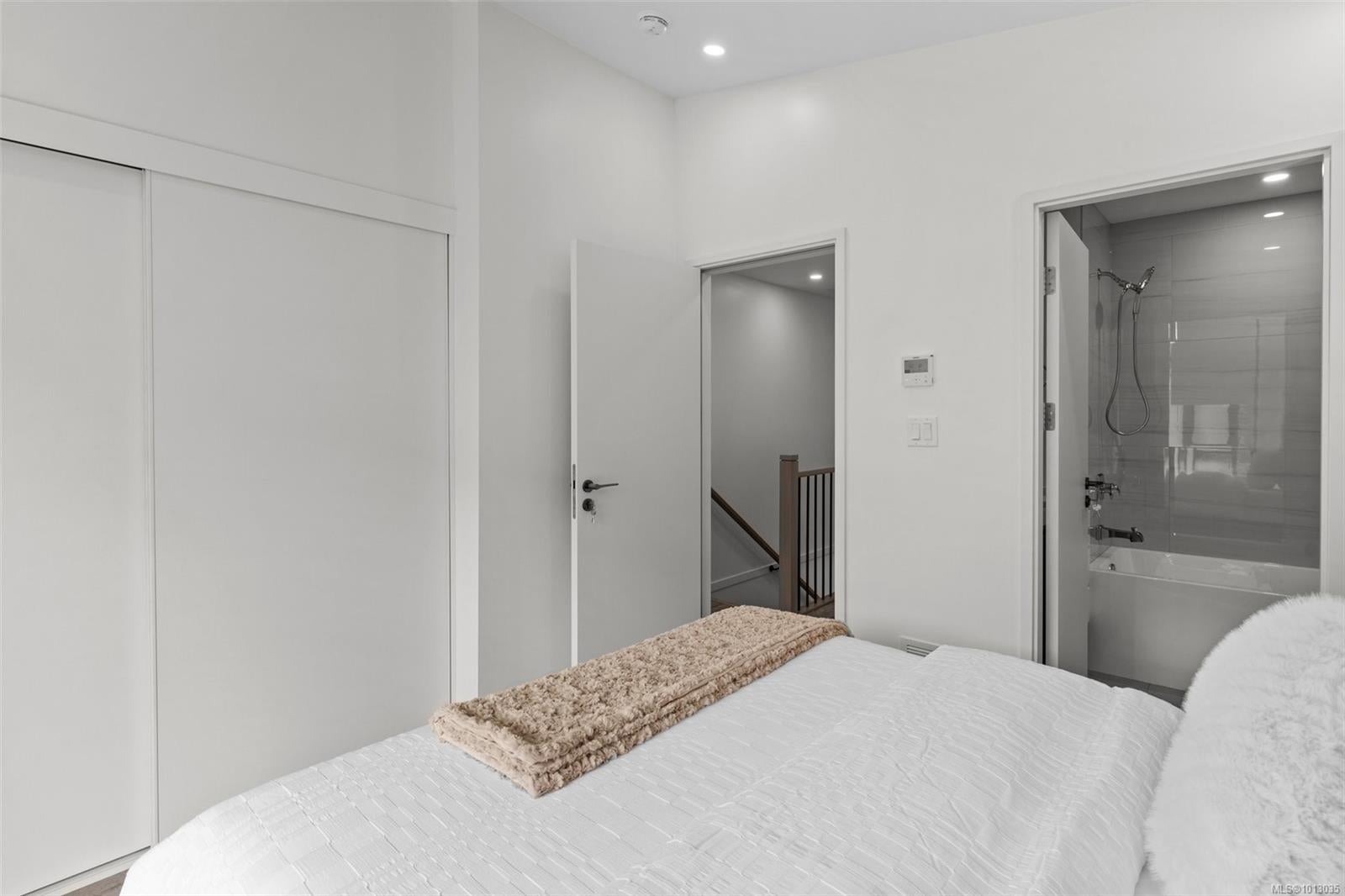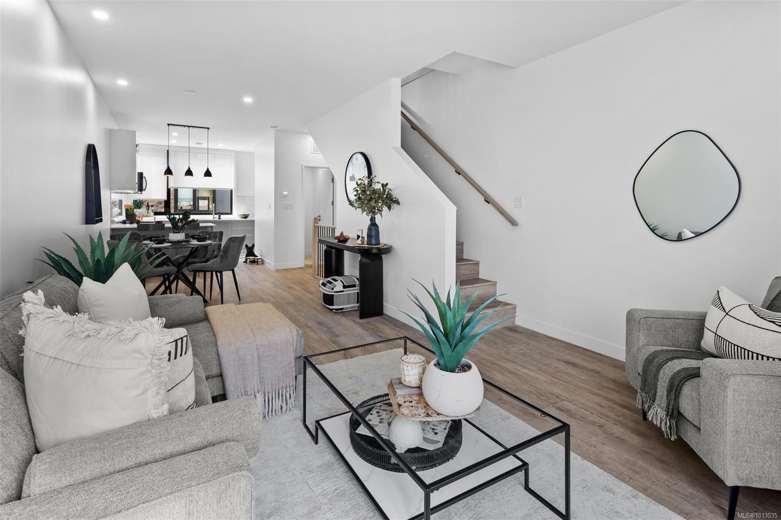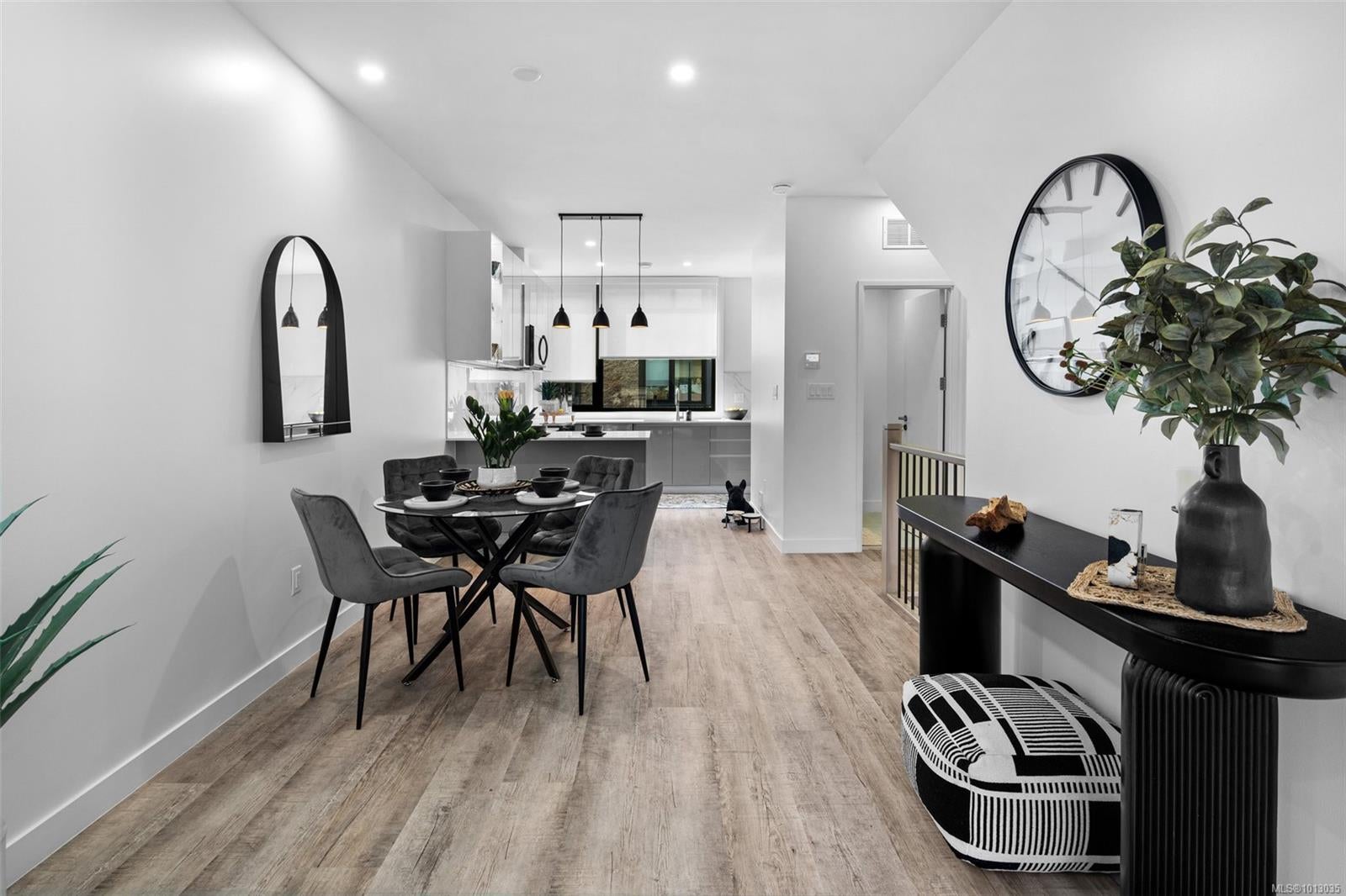 Project now fully completed ready for immediate occupancy! NO property transfer tax and developer will PAY THE 1ST YEARS STRATA FEES! See the difference of European design and craftsmanship. This unit features two bedrooms each with ensuite bathrooms, main floor powder room, and open concept living space. Features not seen elsewhere include triple glazed windows, steel roofs, fully ducted multi-zone heat pump / air conditioning systems, custom closet systems, solid core interior doors with magnetic latches and more. No BC Property Transfer Tax, 30 year amortization CMHC mortgages, low strata fees, two dedicated parking spots, possible 35 year amortization through our financing partner. Location is very central and walkable to all downtown Langford amenities.See the difference of European design and craftsmanship.